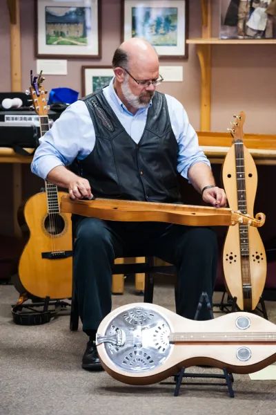 Steve has taught and performed at festivals in the UK and Canada, as well as folk schools and festivals across the US. He is the founder of the Colorado Dulcimer Festival and is the past Secretary-Treasurer of Local 1000 the non-geographical local of the AFM, specifically created for traveling musicians. Active in the PNW Chapter of NARAS (Grammys), Locals 423 & 1000 AFM (Traveling Musicians), Eulberg owns Owl Mountain Music, Inc., was the first guitar instructor on JamPlay.com, and is co-owner and teacher at dulcimercrossing.com. His pre-school & elementary school programs are engaging, informative, uplifting and fun! He earned a Master of Music Education degree from Boston University in 2007 with a focus on teaching people to play folk music on folk instruments. He has published several books to equip and nurture dulcimer and guitar players. His 2022 book First 50 Songs to Play on Mountain Dulcimer, published by Hal Leonard is a best-selling favorite among players of all skill levels, and his music has been included in the compilations Masters of the Mountain Dulcimer and Great Players of the Mountain Dulcimer. |
